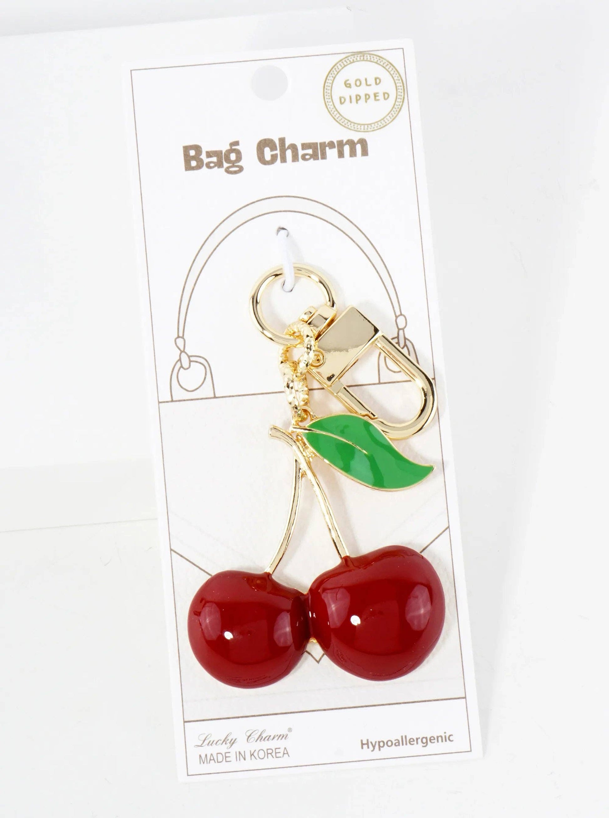 18K-Gold-Dipped 2-inch Large Enamel Cherry Bag Charm
