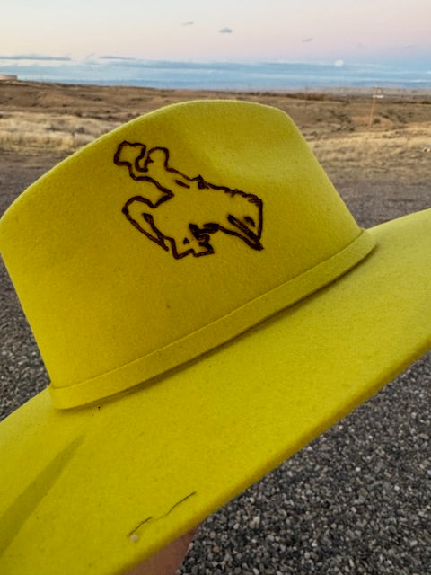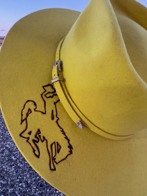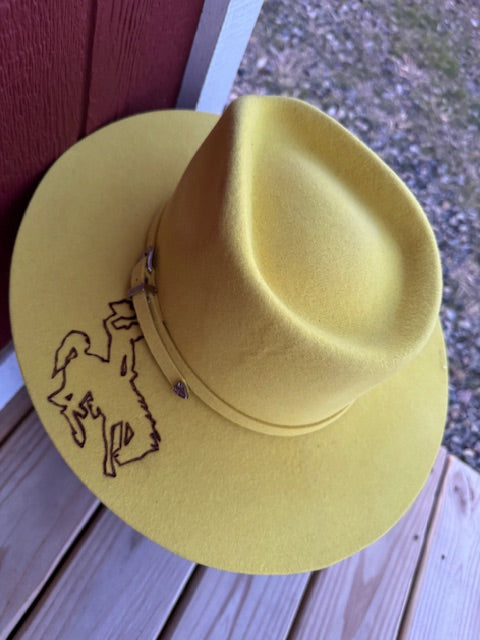 The Kenney design on an Emery Merino Wool teardrop rancher. Licensed University of Wyoming.