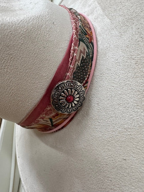 Faux suede rancher hat featuring Willow design, 2 bands and silver accessories